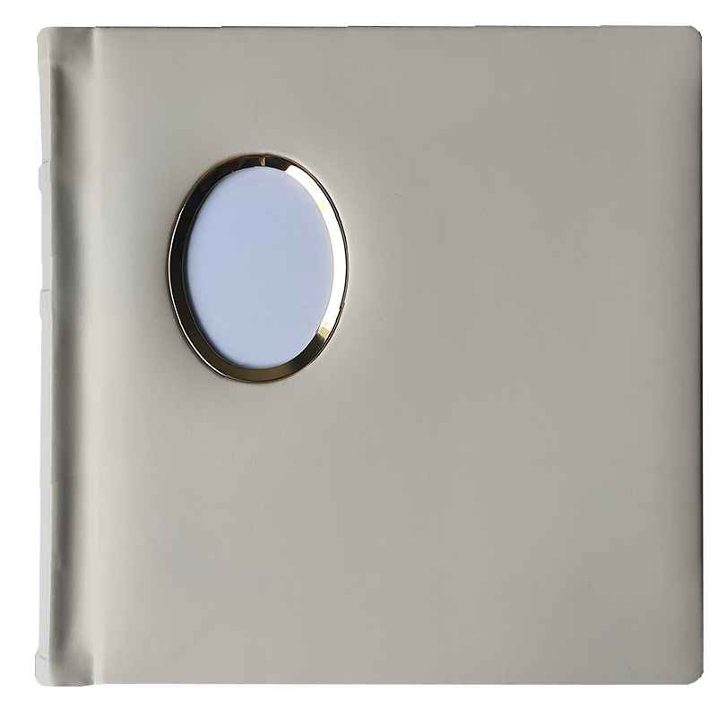 This album comes with an oval window frame in the top left corner. Consider the smooth cover version if you don't want a frame on the front of your album.