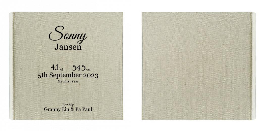 • Modern linen material cover, ready to be personalised. Details below.